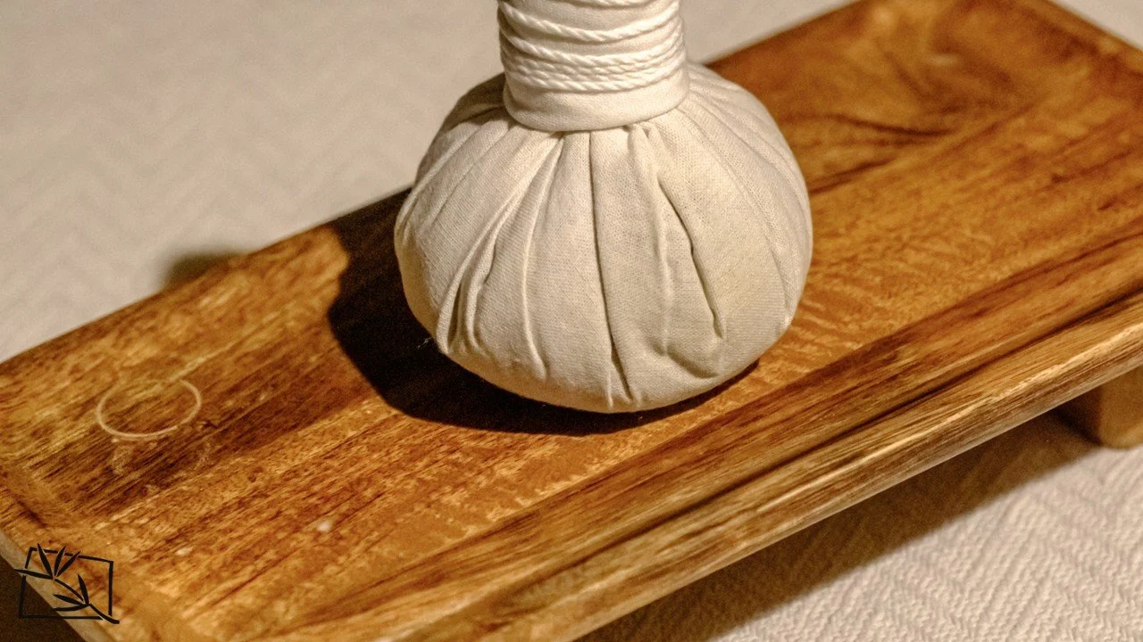 he Thai Herbal Ball is a traditional therapy rooted in Thai wellness practices. Each herbal ball is handcrafted using a blend of therapeutic herbs such as lemongrass, turmeric, kaffir lime, camphor, and other natural botanicals. The herbs are wrapped tightly in cotton cloth to form a compress, then gently steamed before use. The heat activates the essential oils within the herbs, releasing their aromatic and therapeutic properties.